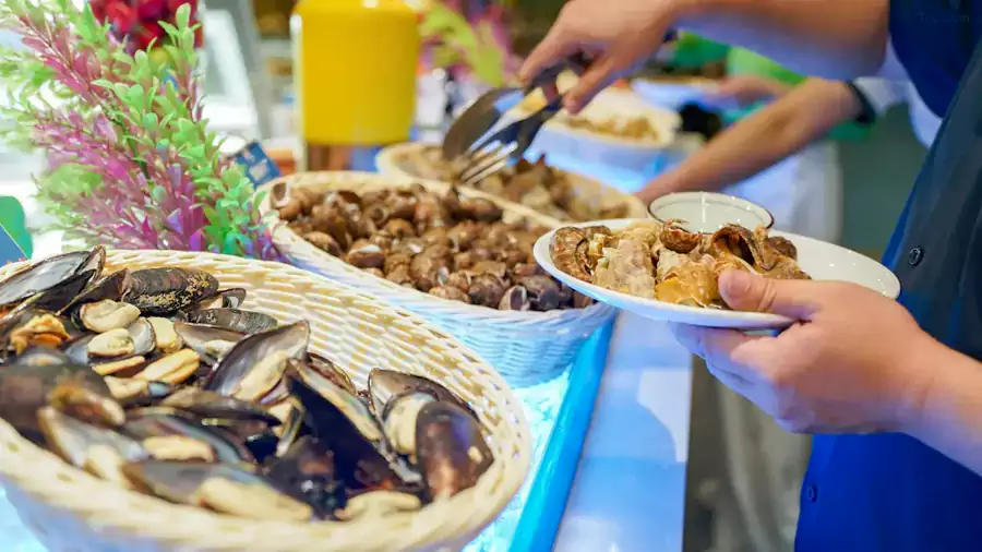 酒店的配套也把 “亲子友好” 拉满:松鼠主题泳道里,娃能套着游泳圈追着卡通浮漂玩;松鼠餐厅的自助餐太懂小朋友了,棉花糖机转个不停,巧克力喷泉能蘸着水果吃,三文鱼切得小块方便拿,家长也能吃到新鲜的海鲜和热菜;傍晚去松林咖啡厅买杯饮品,坐在窗边看远处的山河湖景,连发呆都变得舒服。