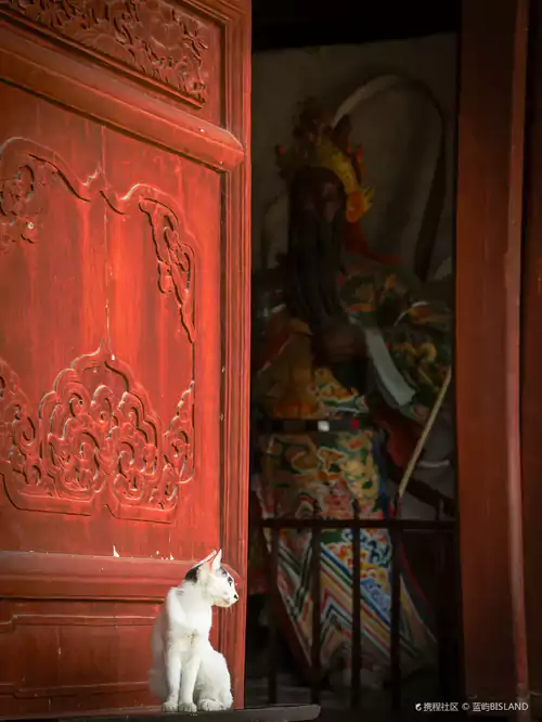而道观老子殿东侧的 “猫猫庙”,更是藏着软萌的惊喜 —— 它是《中国奇谭》里 “猫猫庙” 的原型,供奉着曾守护财神赵公明的 “谭神”(一只造型可爱的猫),庙里养着 4 只亲人的猫咪,轻轻呼唤,它们便会蹭到脚边,用毛茸茸的尾巴扫去旅途的疲惫。