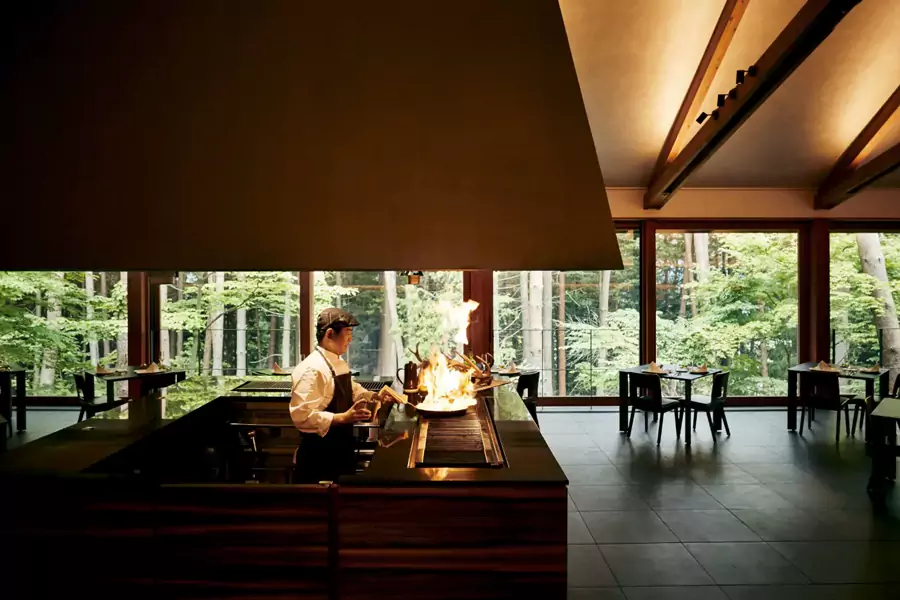 若想解锁更多野趣,还可预约森林野餐、自制披萨或山林觅食活动,在草木环抱中享受美食,让味蕾与自然共鸣。沿着餐厅往上走,云端露台与咖啡馆是休憩的绝佳去处,冬日围坐木薪火炉旁喝一杯醇香咖啡,夏日捧一杯冰饮翻阅书架,时光在此变得格外温柔。