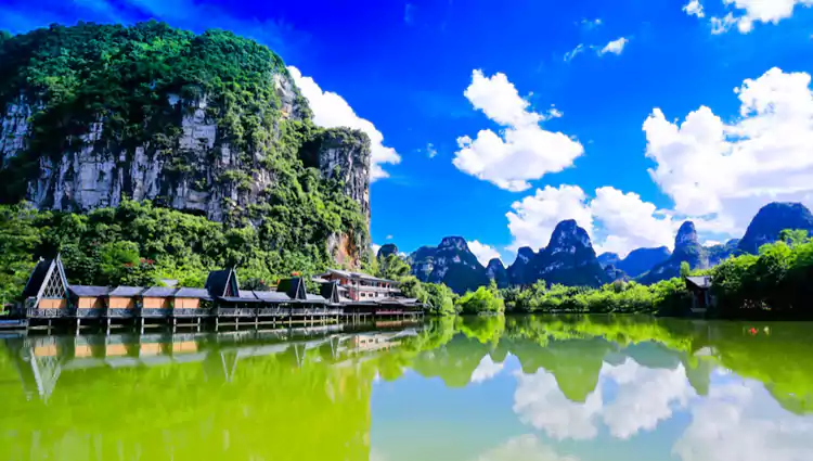 广西崇左与越南相邻,这里的山水比桂林更添几分静谧。明仕河绕着喀斯特峰林流淌,坐竹筏顺流而下,看两岸的稻田与竹楼掠过,渔夫的斗笠在远处晃成剪影,像闯进了水墨画卷。