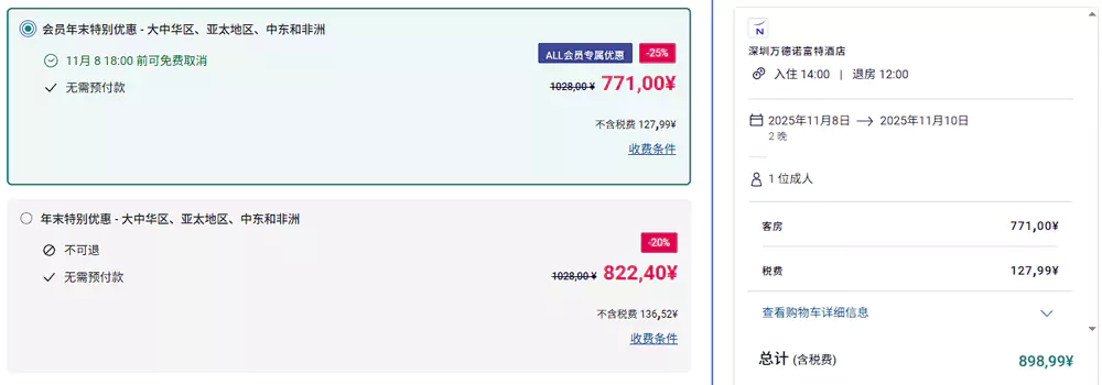 我查询了一下深圳一家酒店的房价:
