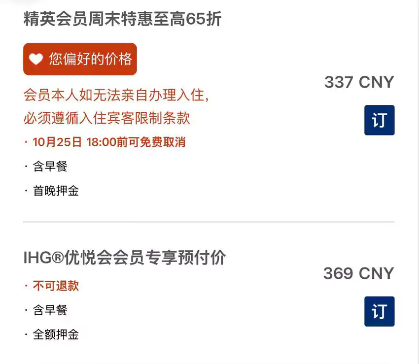 IHG周末65折 | 实际折扣力度