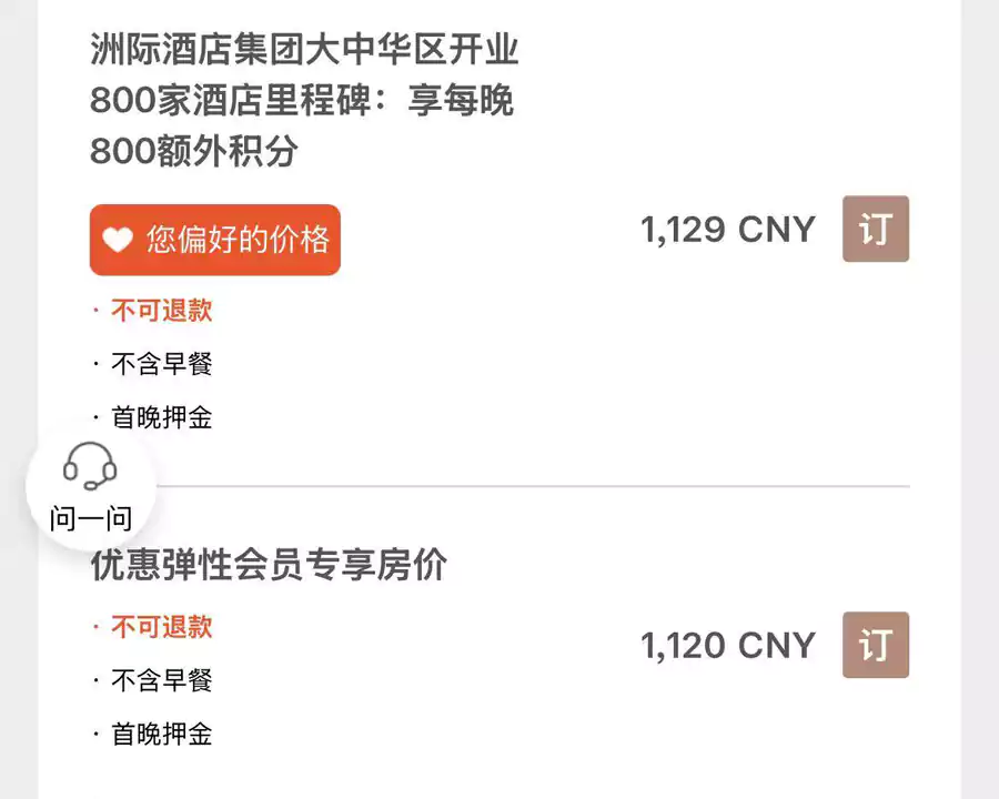 在小程序查询酒店时,就可以看到活动房价。聪明的你一定会发现活动房价比最低房价贵了一点。