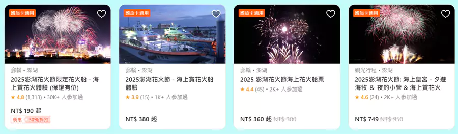 每年夏季的澎湖国际海上花火节都是一场夏季盛会,2025年花火节主题和日程安排已经公布。Klook 发布了今年澎湖花火节优惠产品,每周三可以1折优惠价格抢购各类旅行产品,其他各类船票、门票和行程7折起。