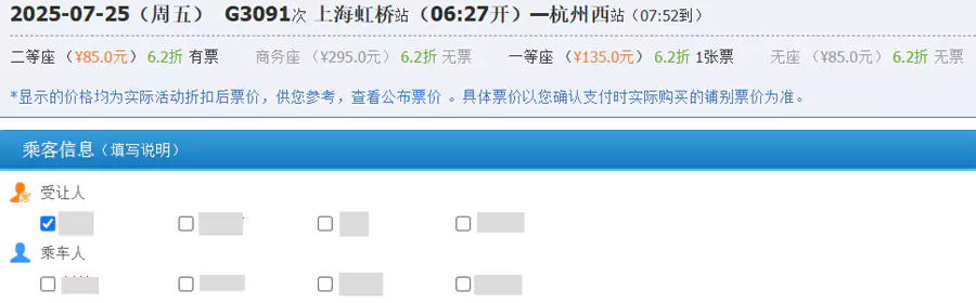 注意:如果是积分兑换,必须选择受让人,而不是乘车人。