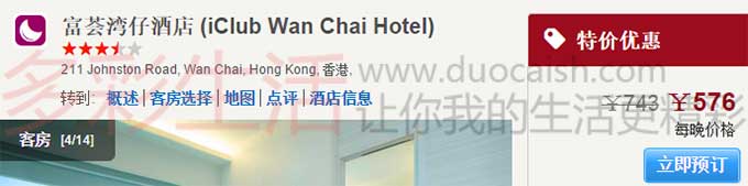 Wego和比驿一样都只提供搜索数据,并不提供酒店的预定服务,所以点击页面上的查看特价的话就会跳转到对应的预定网站去,比如这家富豪荟酒店就会跳到最低价的酒店官网去完成预定。或者看中了其他网站的价格,比如我想看看hotels.com上的价格是不是准确,就直接点hotels.com633元这行文字,就会跳转到他家网站去完成预定。