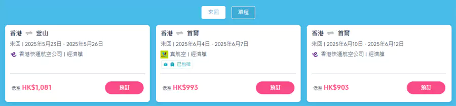 | 香港-韩国直飞机票减HK$100 | 2025年6月8日 |